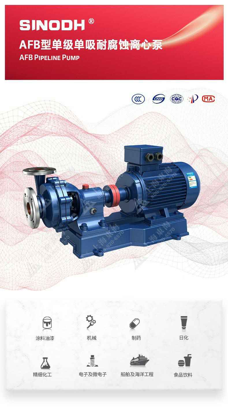 AFB型单级单吸悬臂式耐腐蚀离心泵,为米乐网页版登录官网-米乐(中国)自主研发生产。本系列产品适用于输送不含固体颗粒,有腐蚀性液体。被输送介质温度为-20℃~200℃,泵的进口压力不能大于0.2MPa,广泛用于石油、化工、冶金、合成纤维、制药、食品、酿造等工业部门,也可供工矿、企业及城市供水、排水之用。