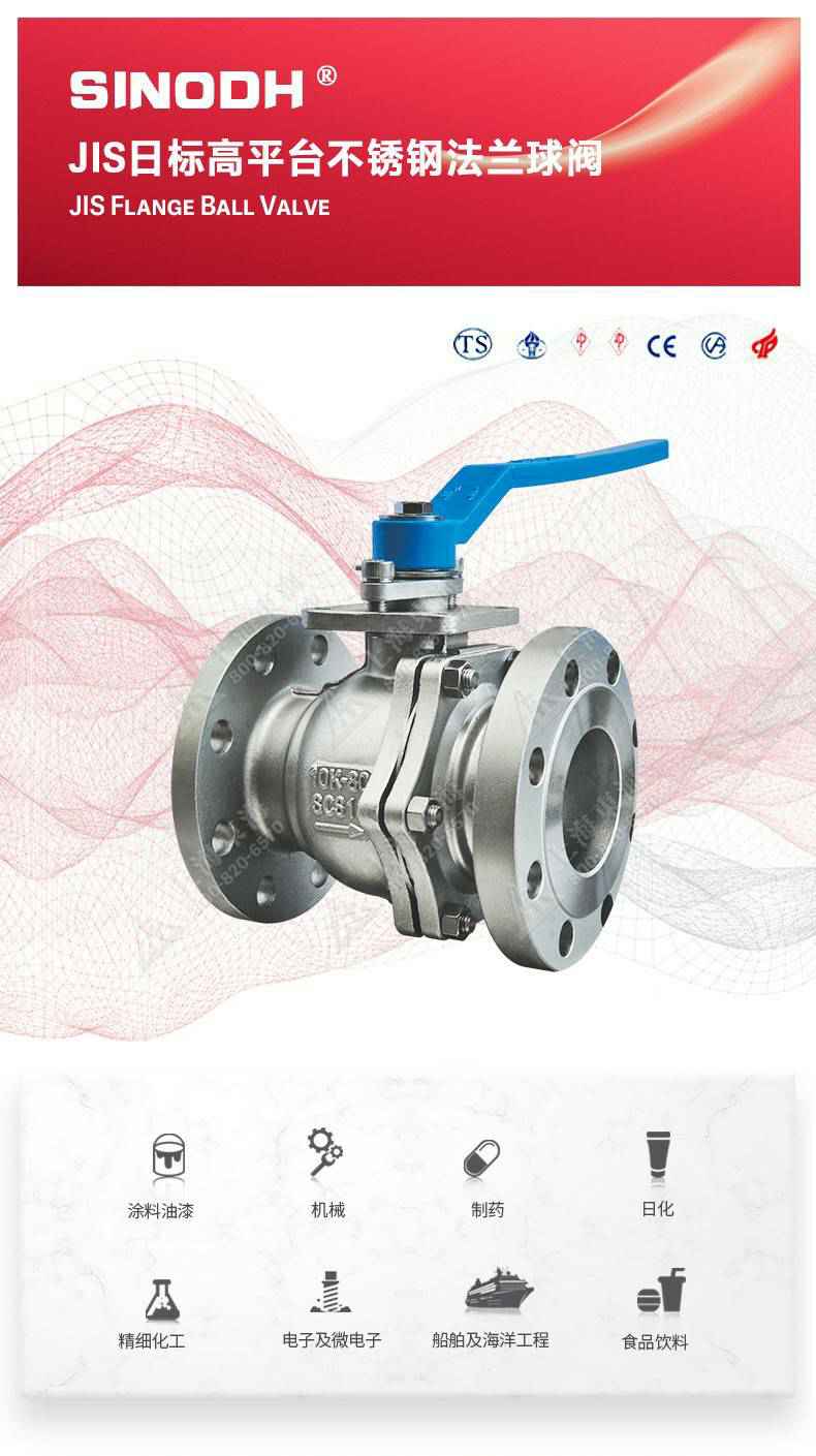 JIS日标高平台不锈钢法兰球阀,为米乐网页版登录官网-米乐(中国)自主研发生产本产品设计制造标准符合J1 SB2071标准,该产品的球体(密封件)是浮动的,在介质压力作用下,球体能产生-定的位移并紧压在出口端的密封面上,保证出口端密封。适用于水、溶剂、酸和天然气等一般工业介质,也适用于工况恶劣的介质,如氧气、过氧化氢、乙烯等介质。